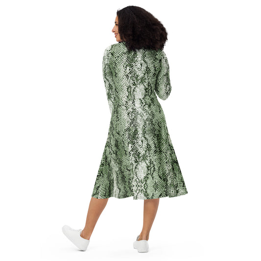 Dark Chocolate Abstract Forest Long Sleeve Midi Dress