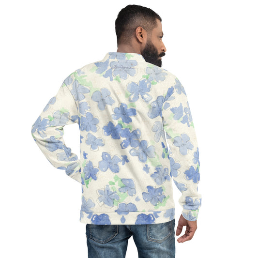 Recycled Unisex Bomber Jacket - Blu&White Watercolor Floral - Men