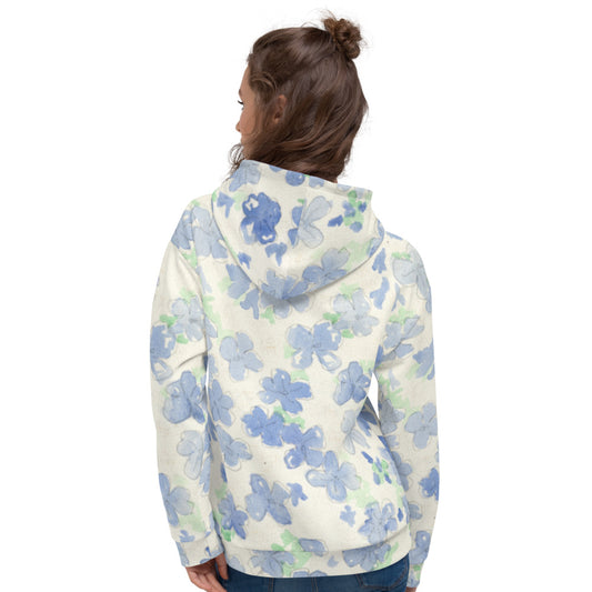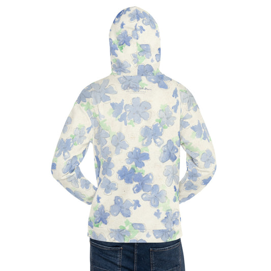 Recycled Unisex Hoodie - Blu&White Watercolor Floral - Women
