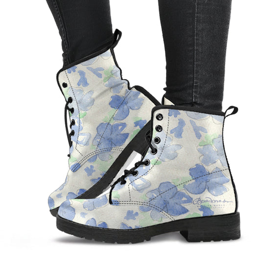 Blu&White Watercolor Floral Leather Boots (Vegan)