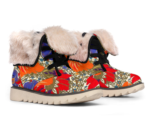 Orange Poppy Olive and Bright Sea Blue Paisley Polar Boots