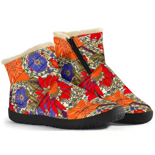 Orange Poppy Olive and Bright Sea Blue Paisley Winter Boots