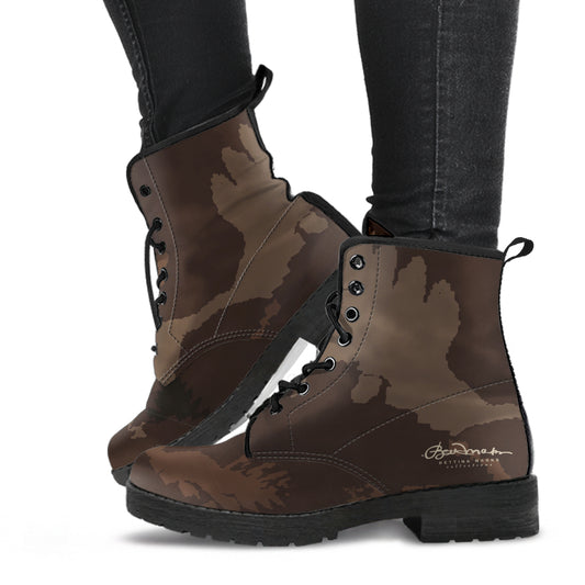 Abstract Forest - Chocolate Brown Leather Boots (Vegan)
