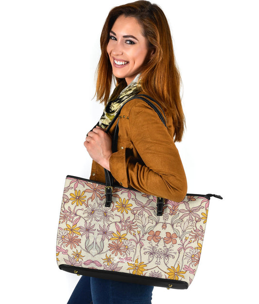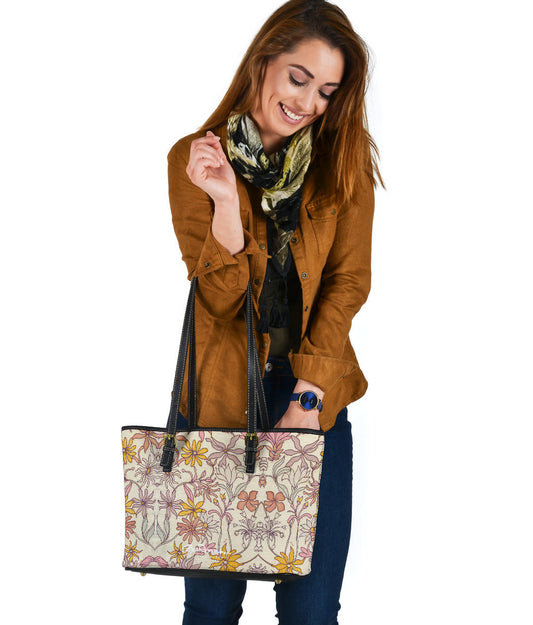 Vintage Pastel Floral Leather Hand Bag w Shoulder Strap
