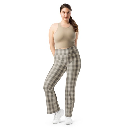 Cream Plaid Flare Leggings