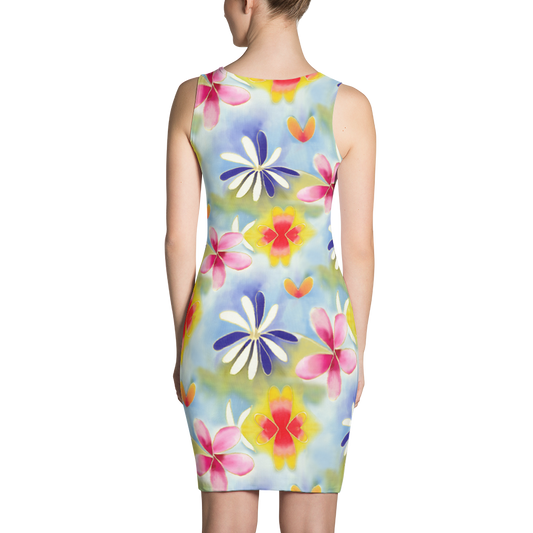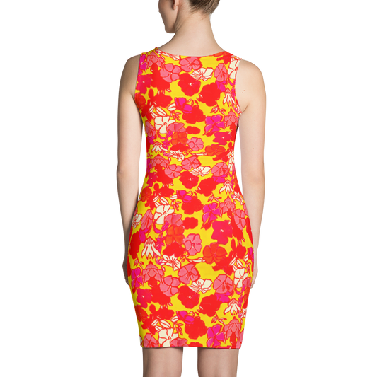 Sargasso Blue and Mellow Rose Damask Fitted Dress