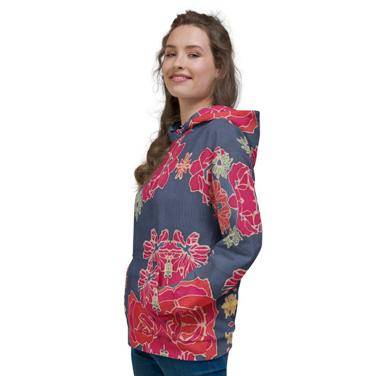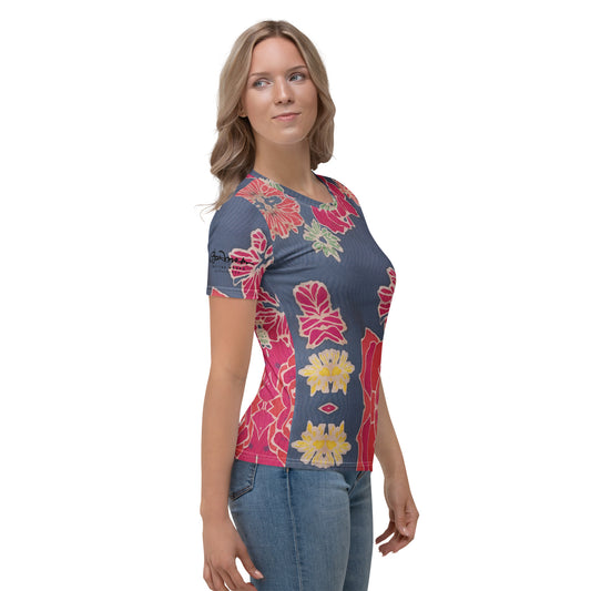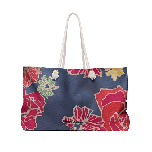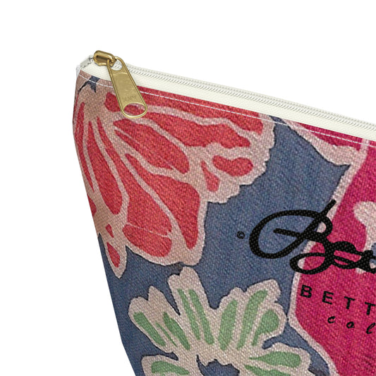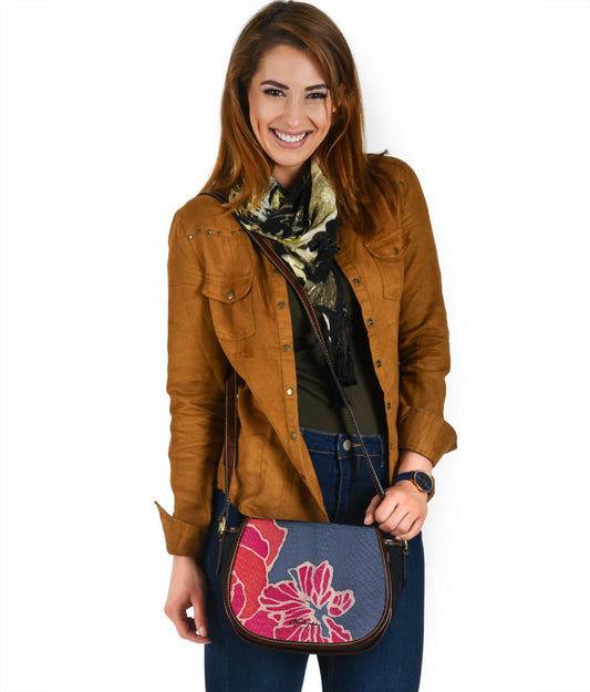 Floral Denim Leather Hand Bag w Shoulder Strap