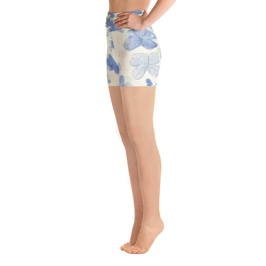 Blu Floral Watercolor Yoga Shorts