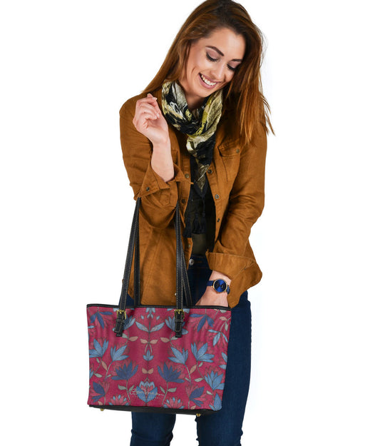 Lotus Flowers On Pink Small Leather Tote
