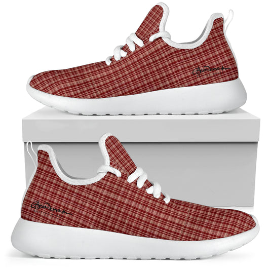 Maroon Beige Tight Plaid Mesh Knit Sneakers