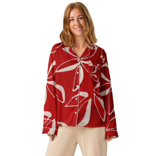 Red and White Lillies Women’s long sleeve pajama top