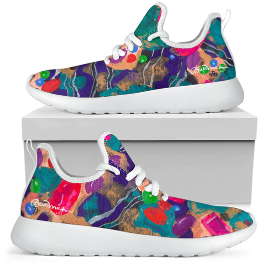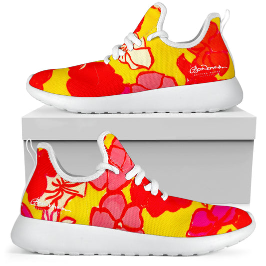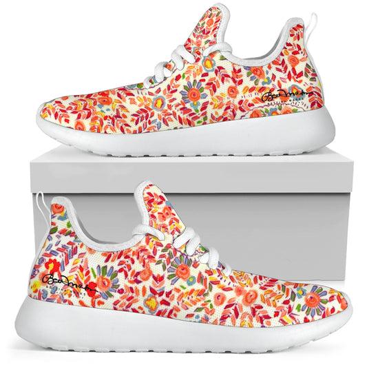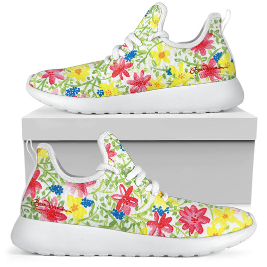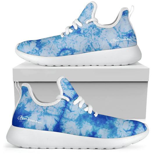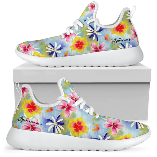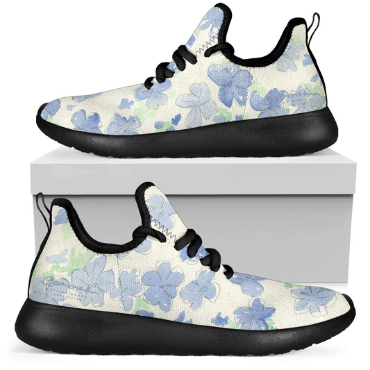 Blu&White Watercolor Floral Mesh Knit Sneakers