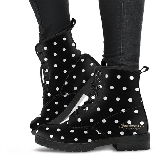 Midnight Polka Dot Leather Hand Bag w Shoulder Strap
