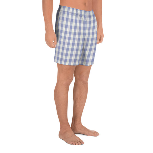 Navy Plaid Men's Athletic Long Shorts