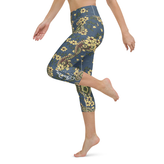 Vintage Blue Paisley Yoga Capri Leggings