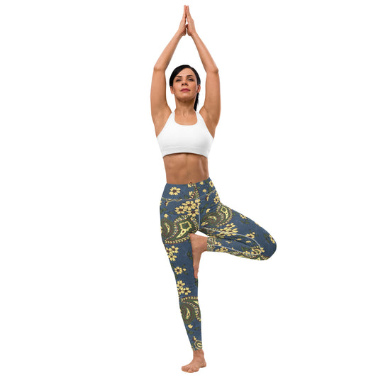 Vintage Blue Paisley Yoga Leggings