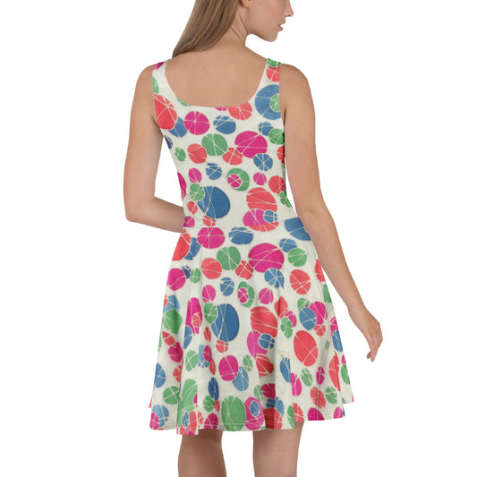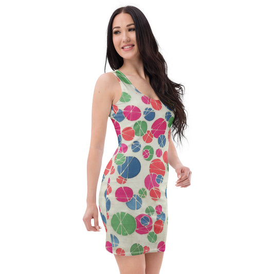 Tossed Medium Pastel Dots On White Fitted Tank Dress
