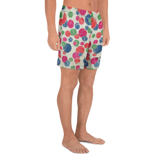 Tossed Medium Pastel Dots On White Men's Athletic Long Shorts
