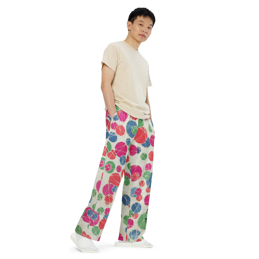 Wide Leg Tossed Medium Pastel Dots On White Pants - Men