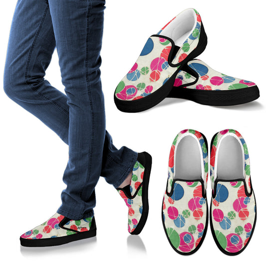 Tossed Medium Pastel Dots On White Slip Ons