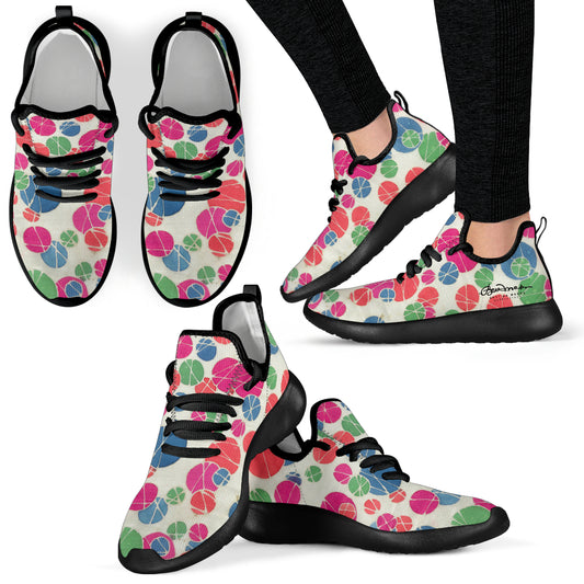 Tossed Medium Pastel Dots On White Mesh Knit Sneakers