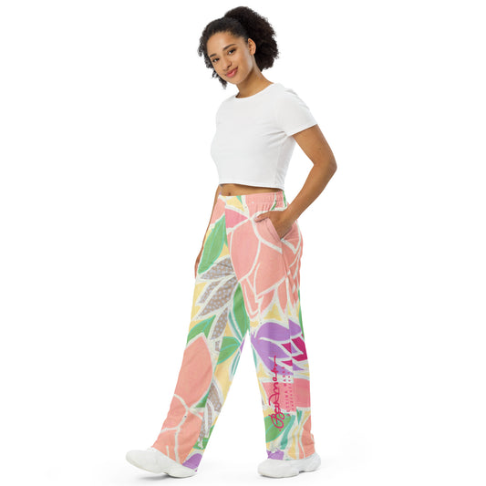 Wide Leg Pastel Tulips & Peonies Pants - Women