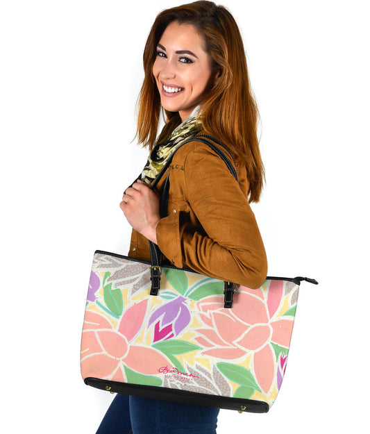 Pastel Tulips & Peonies Large Leather Tote Bag