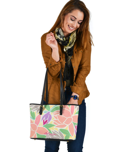 Pastel Tulips & Peonies Small Leather Tote Bag