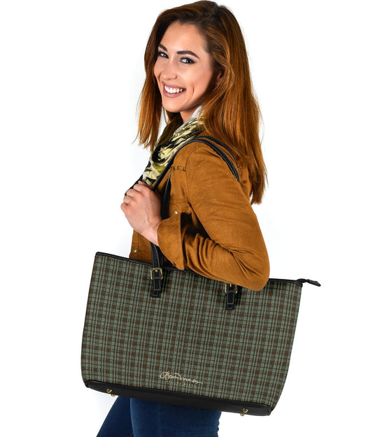 Mint Chocolate Plaid Leather Hand Bag w Shoulder Strap
