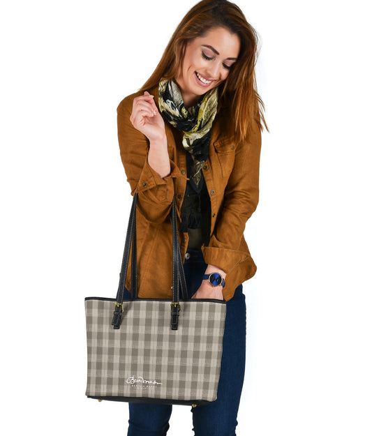 Cream Plaid Small Leather Tote Bag