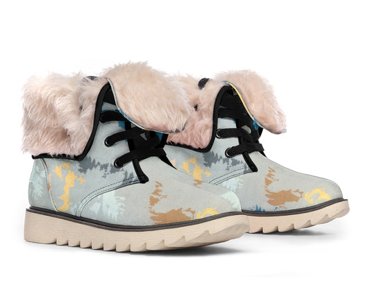 Orange Poppy Olive and Bright Sea Blue Paisley Polar Boots
