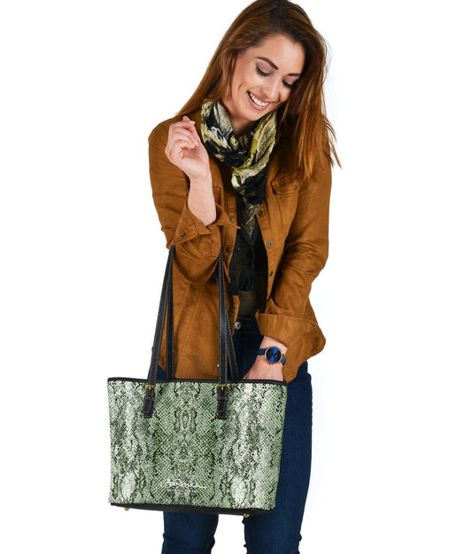 Sage Snake Skin Leather Hand Bag w Shoulder Strap