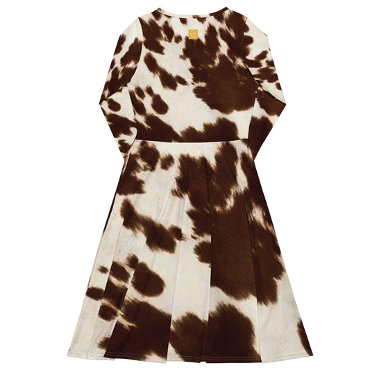 Brown Pony Skin All-over print long sleeve midi dress