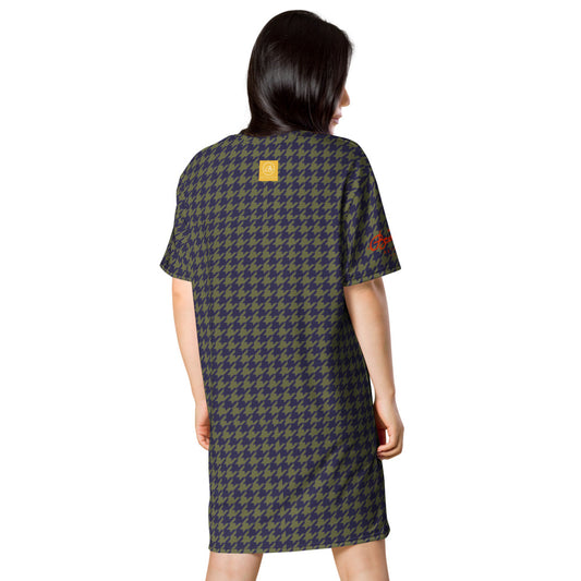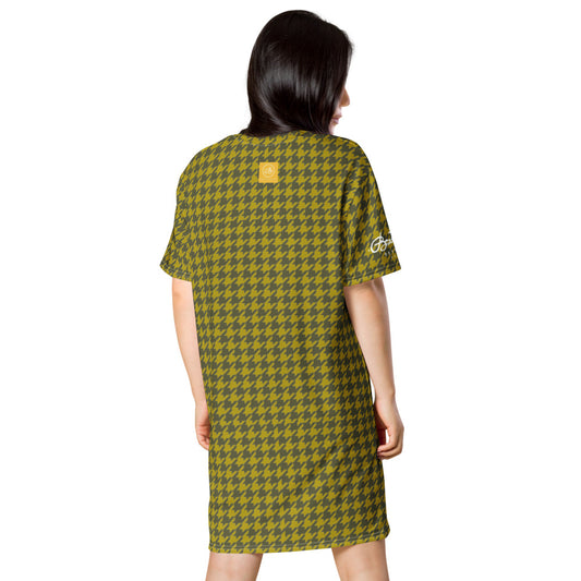 Olive Houndstooth T-shirt dress