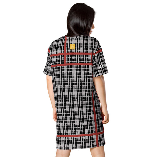 Red Grey Tight Plaid T-shirt dress