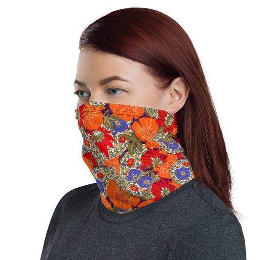 Orange Paisley Floral Neck Gaiter/FaceMask/MockTurtlenect