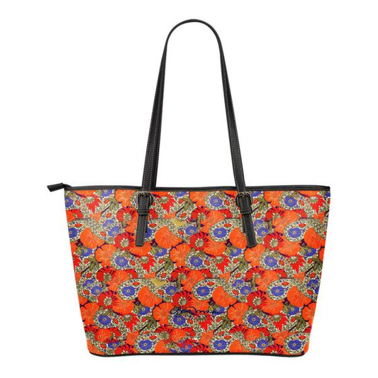 Orange Poppy Olive and Bright Sea Blue Paisley Floral Leather boots (Vegan)