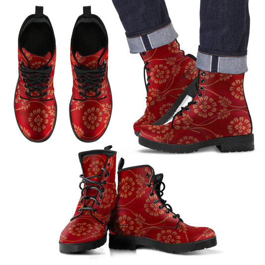 Red Pear and Almond Buff coloured Turkish Tapestry Leather Boots (Vegan)
