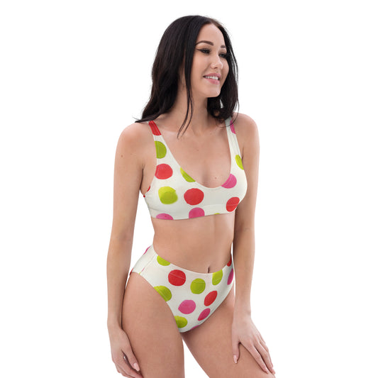 Water Color Polka Dots Recycled high-waisted bikini bottom
