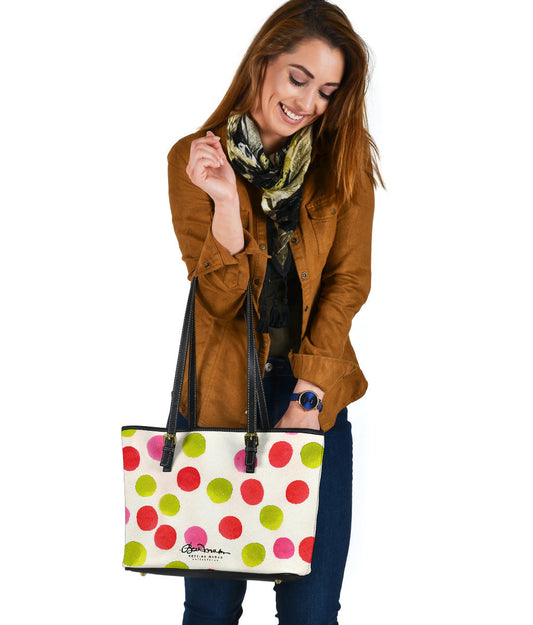 Water Color Polka Dots Small Leather Tote Bag