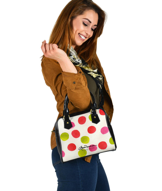 Water Color Polka Dots Leather Hand Bag w Shoulder Strap