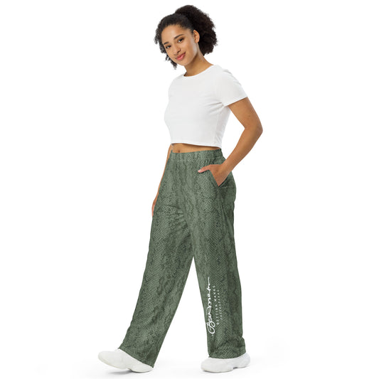 Unisex Wide Leg Sage Snake Skin Pants - Women