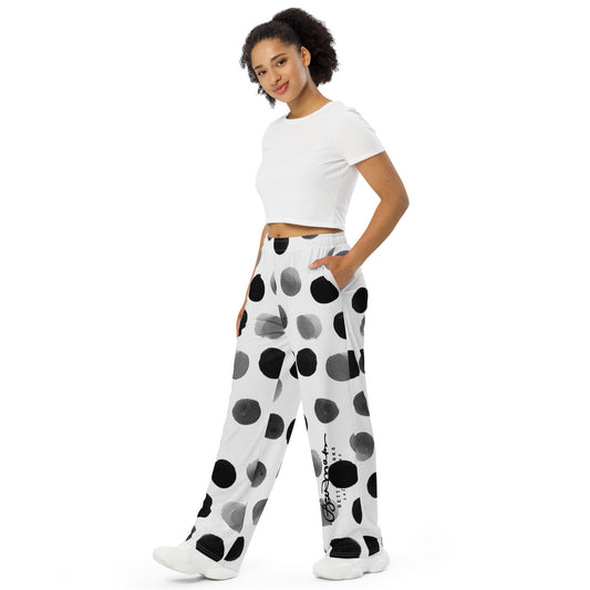 Unisex Wide Leg Charcoal Polka Dot Pants - Women
