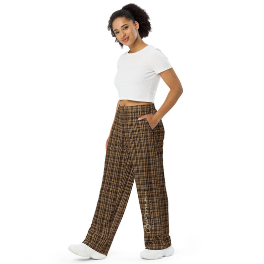 Unisex Wide Leg Caramel Plaid Pants - Women