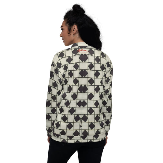 Recycled Unisex Bomber Jacket - B&W Checkerboard Optical - Women