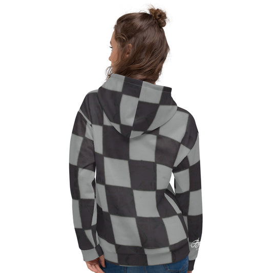 Recycled Unisex Hoodie - Grey Checkerboard - Women