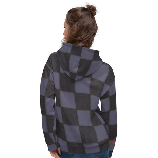 Recycled Unisex Hoodie - Slate Blue Checkerboard - Women