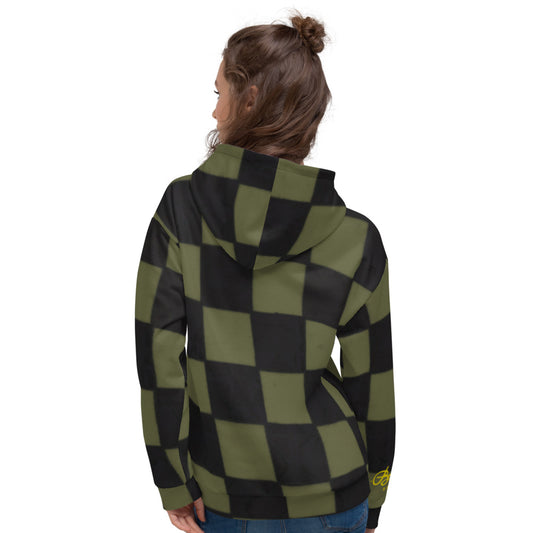 Recycled Unisex Hoodie - Khaki Checkerboard- Women