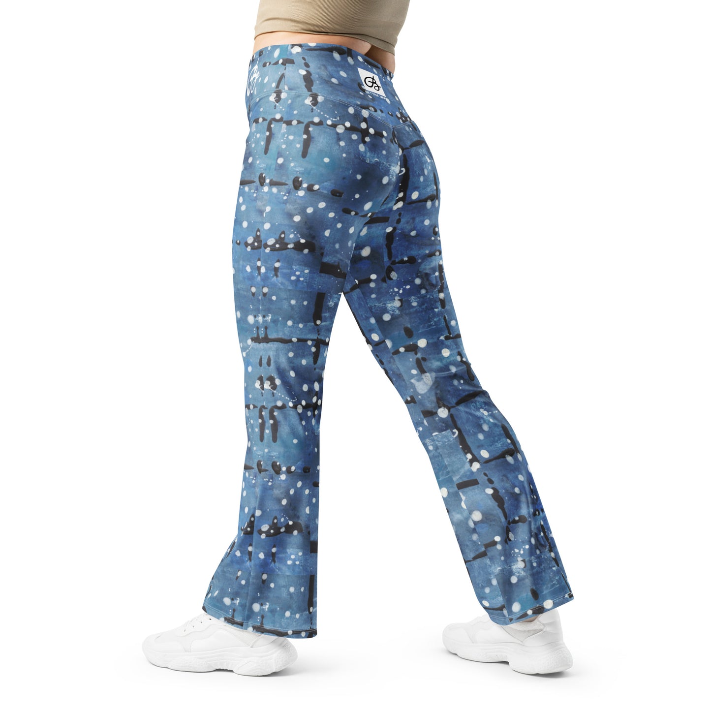 Blue Dotted Plaid Flared leggings