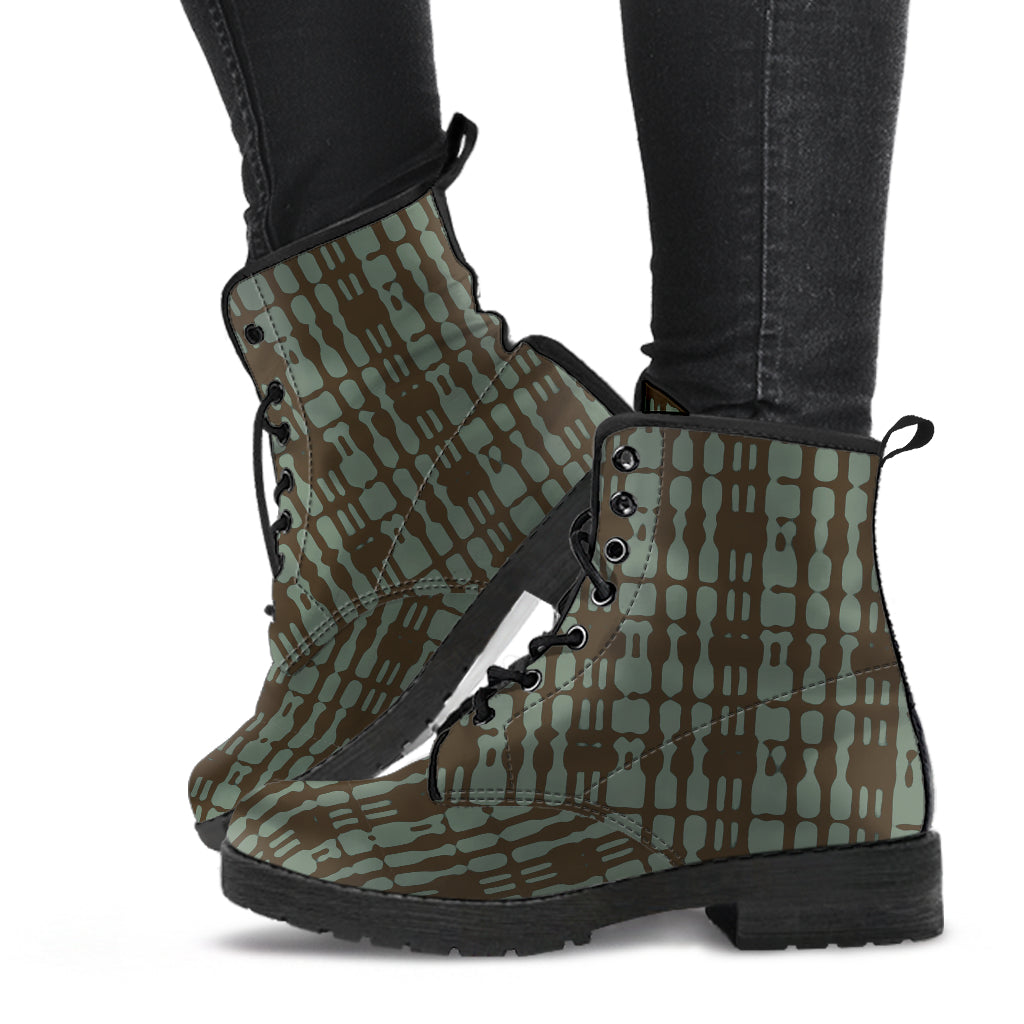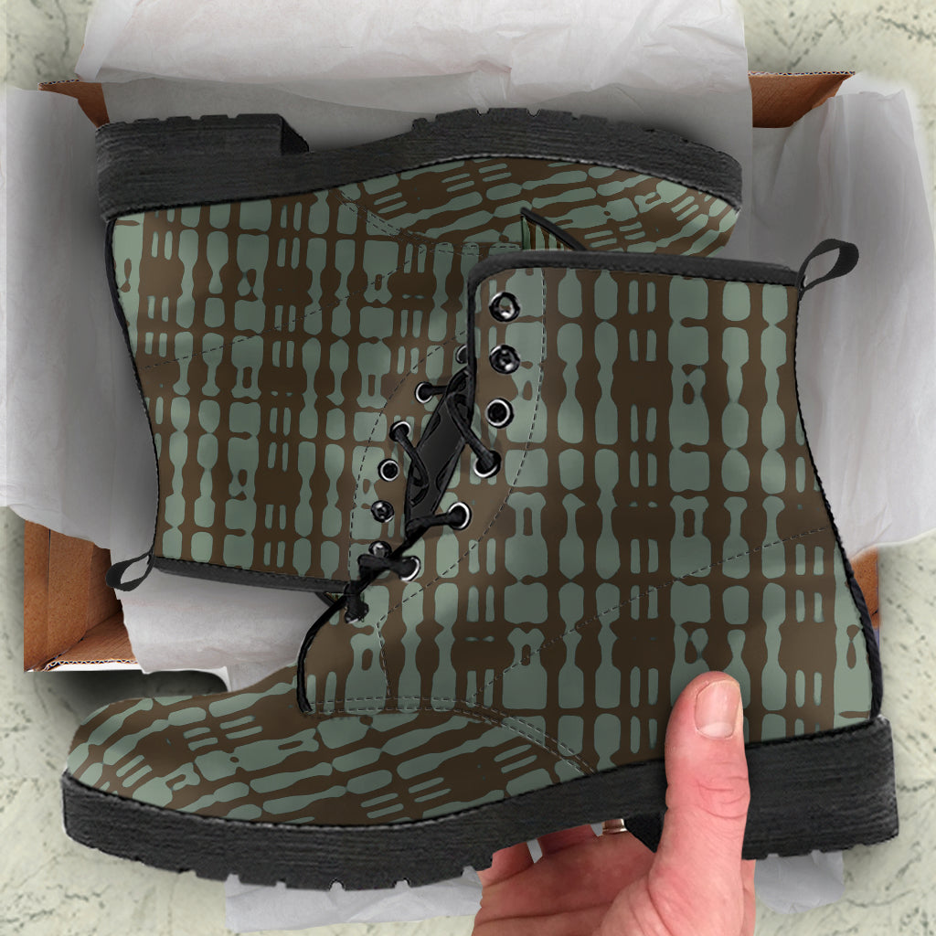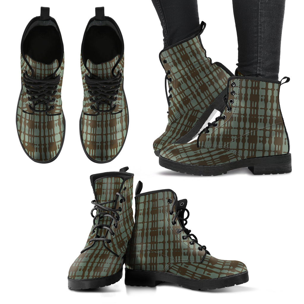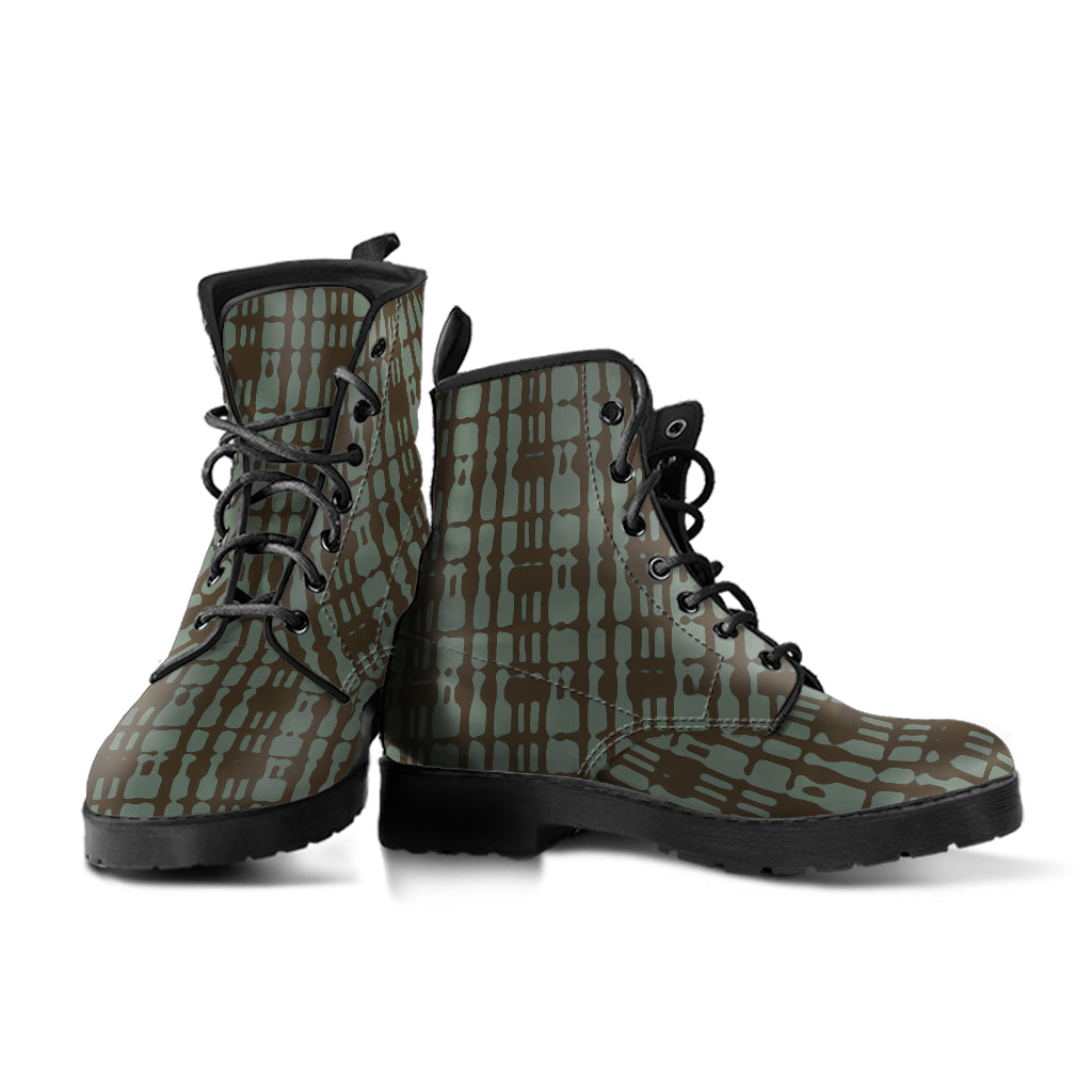 Mint Chocolate Plaid Leather Boots (Vegan)